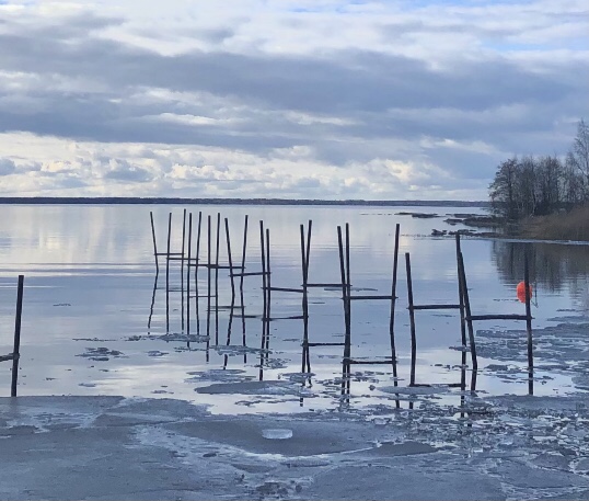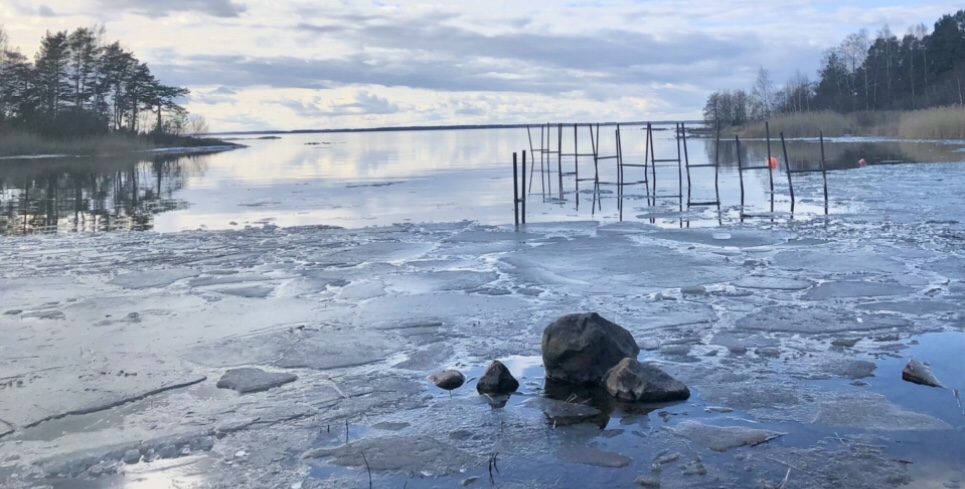Vi hittar ett stålrör att hugga sönder isen vid stranden. Och genom isflak vadar vi ut för ett dopp. Vi känner oss levande. En kopp kaffe på det. Vad kan man mer önska. Ingen gårdag, ingen framtid – bara nu. Nuet äger stort.