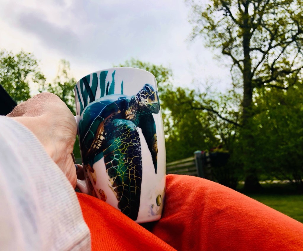 Hon har valt att dricka en kopp kaffe på morgonen.