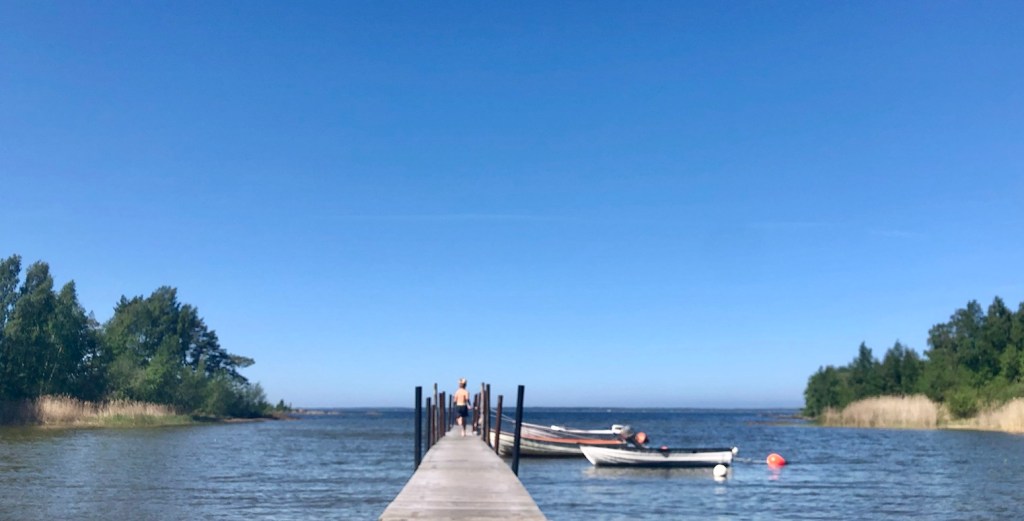 Efter badet blickade han ut över vattnet.